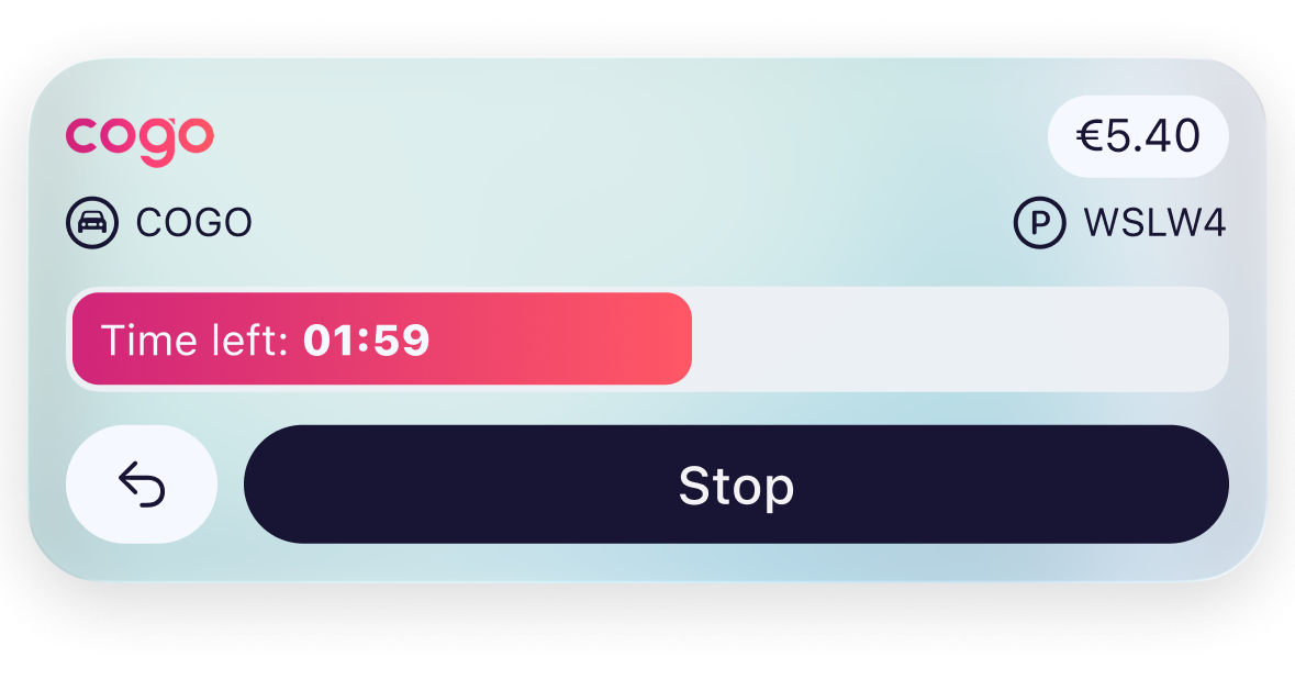 Open the app, select your zone, tap start. Stop when you're done and only pay for the exact time you used.